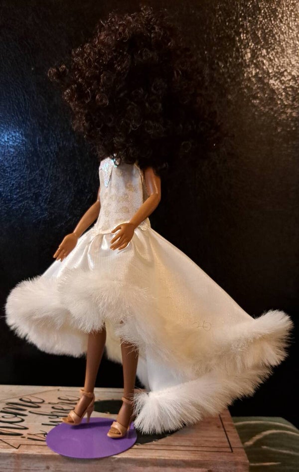 This re- fashioned Naturalistas Doll is in a beautiful and stunning cream colored Marilyn Monroe styled Gown with shoes.