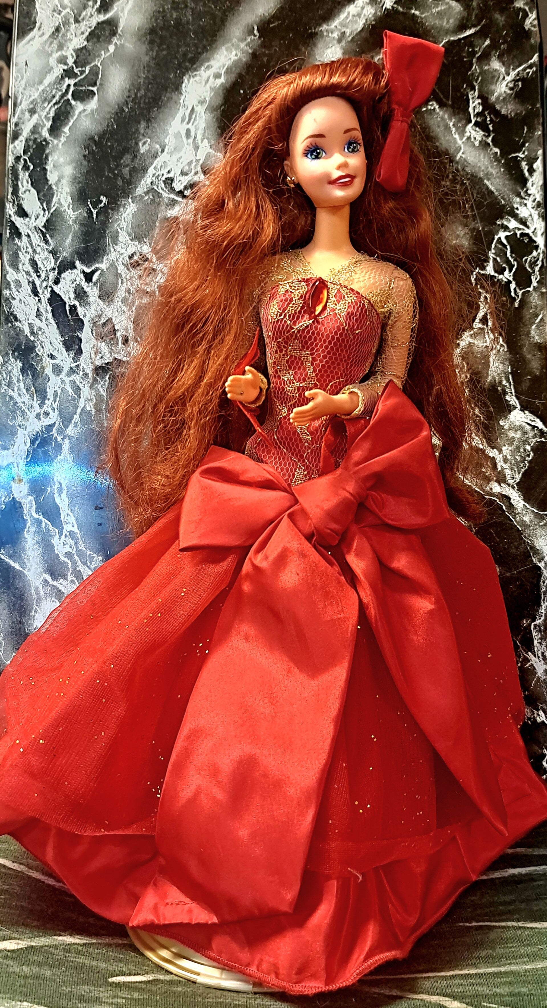 Barbie wearing a beautiful red dress