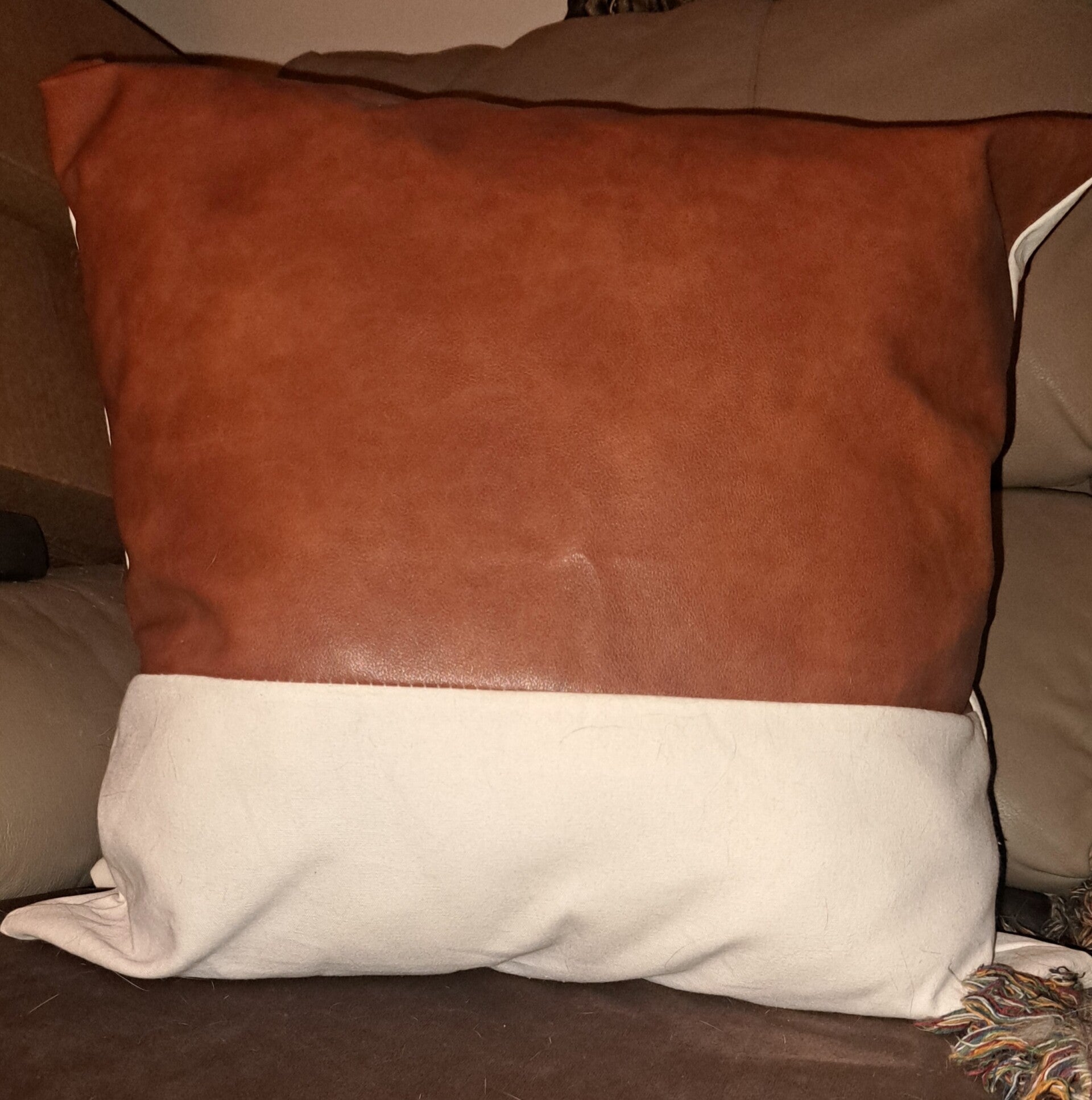 Tosewever Faux Leather/Cotton Throw Pillow Covers, Set of 2 Modern Country Farmhouse Decorative Luxury Boho Pillowcases for Bedroom Living Room Couch Bed Sofa Home Decor (Brown/White, 18" x 18")