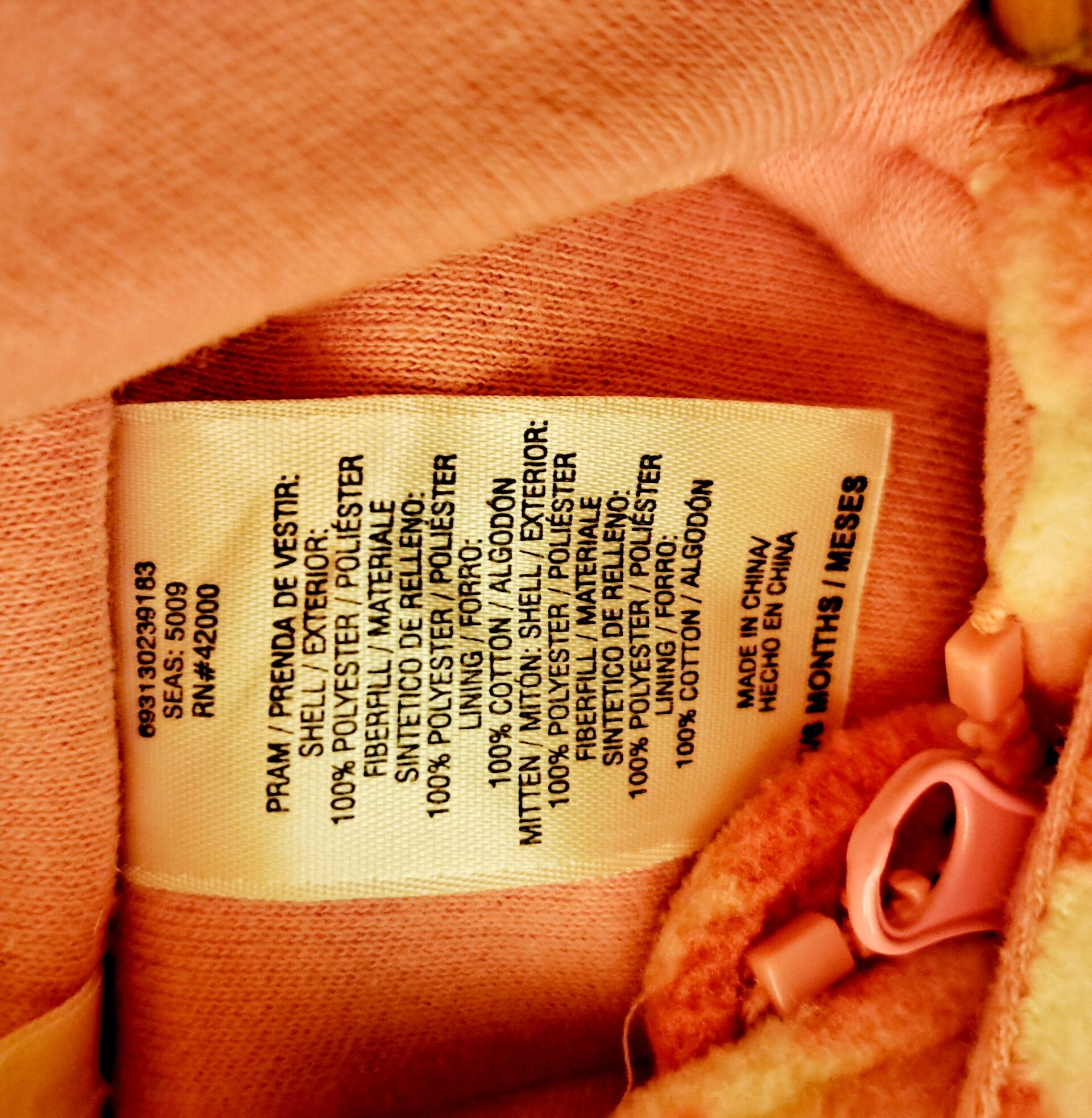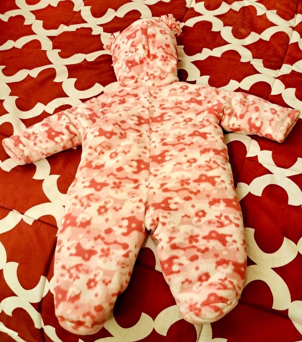 6-9 Months Small Wonders Pink and White Snowsuit in excellent condition with ears on the hood. Like New!