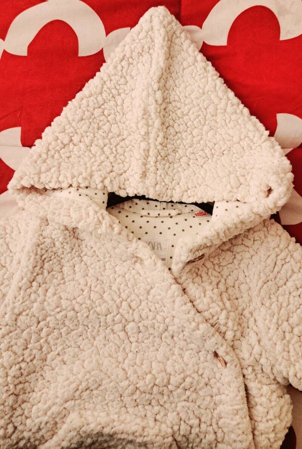Zara 3-6 Months faux sheep fur with hood in excellent condition. This is one of the most beautiful and timeless designs I've seen. Pre-Owned